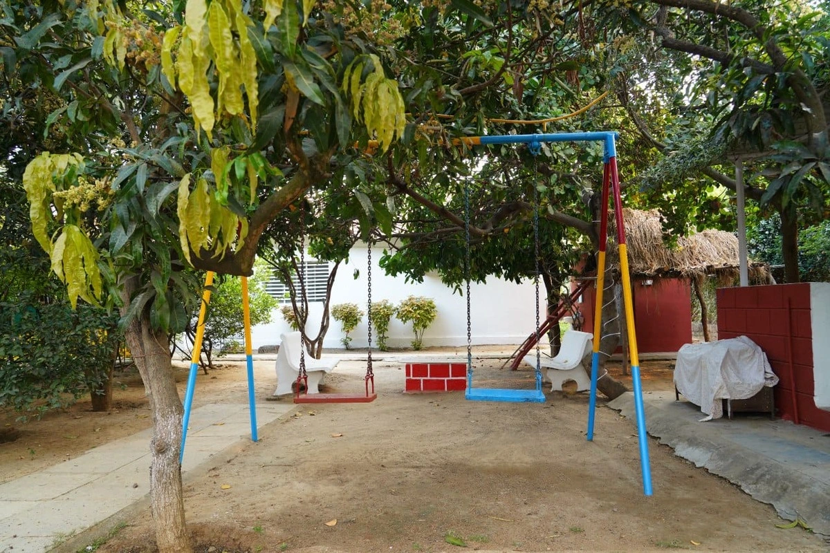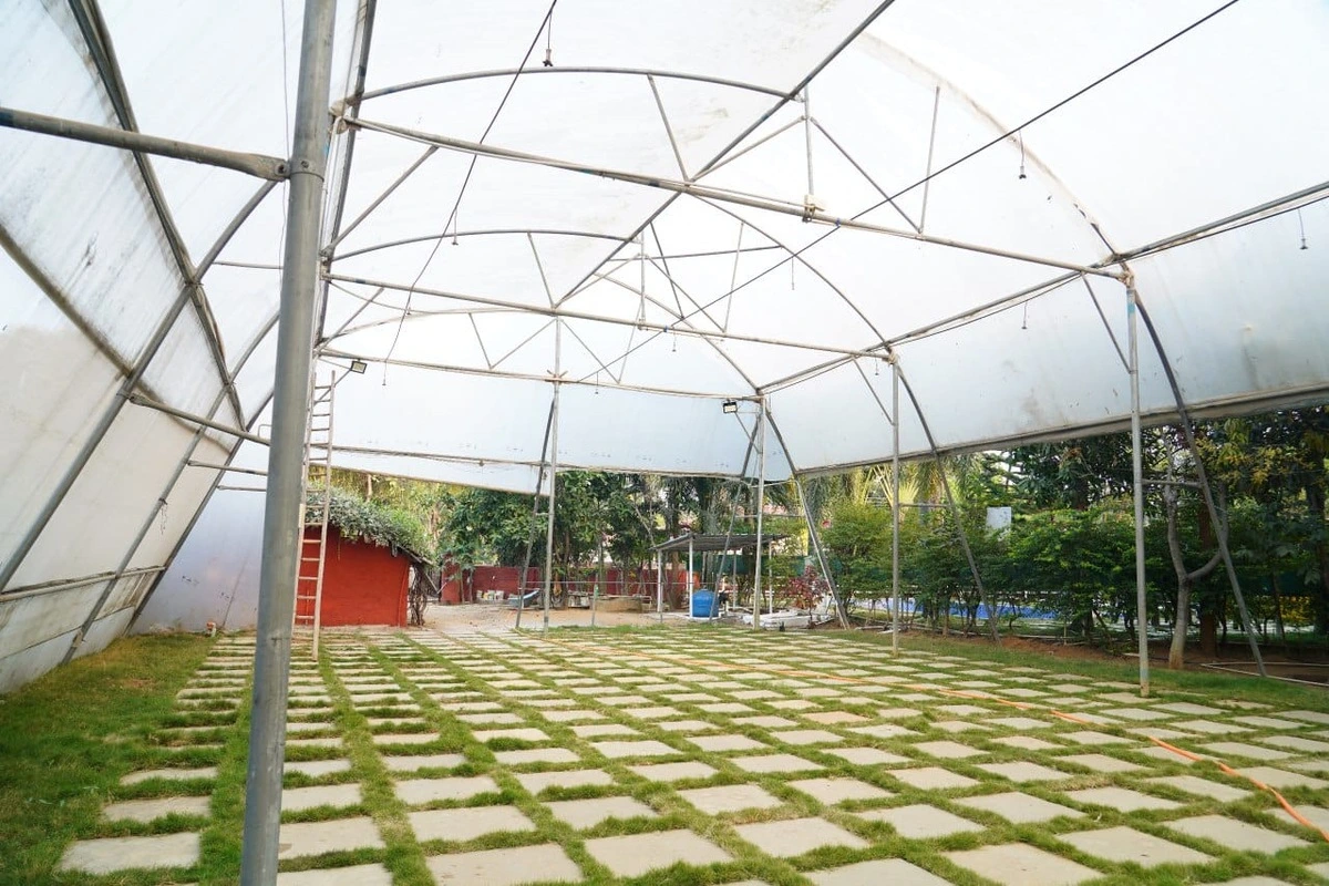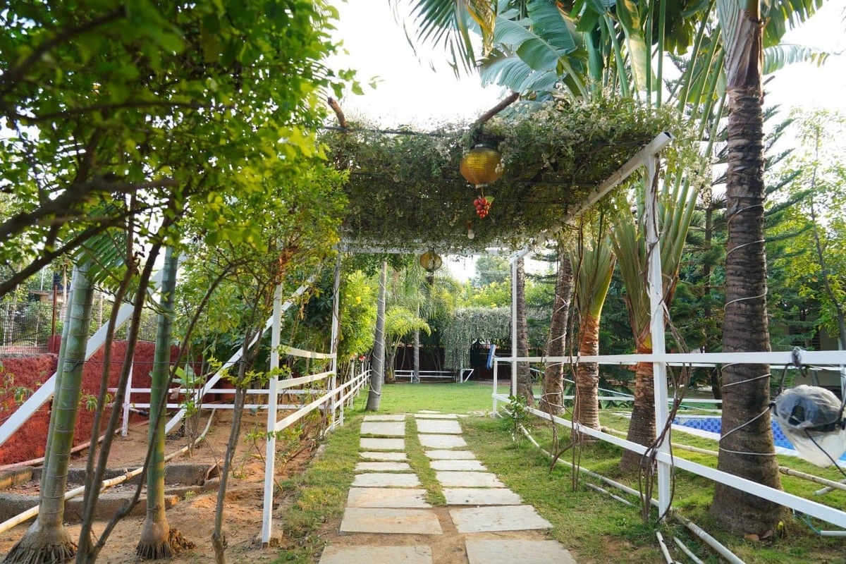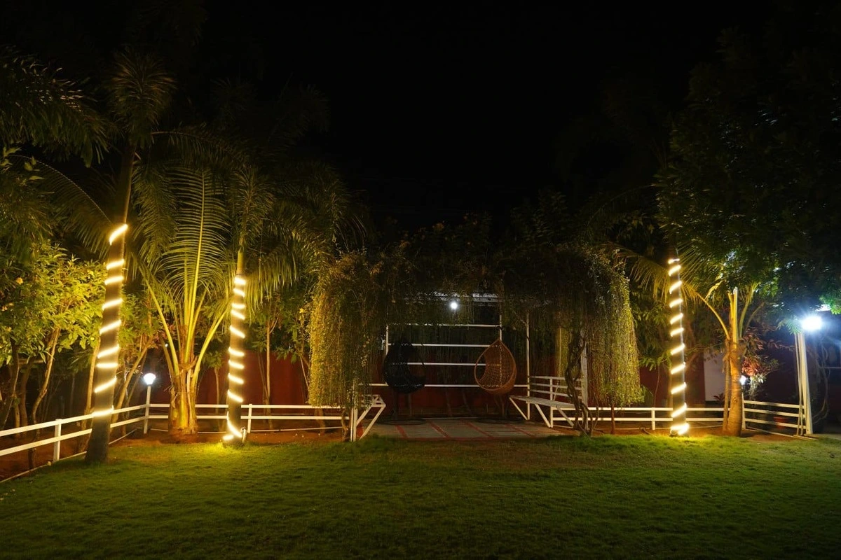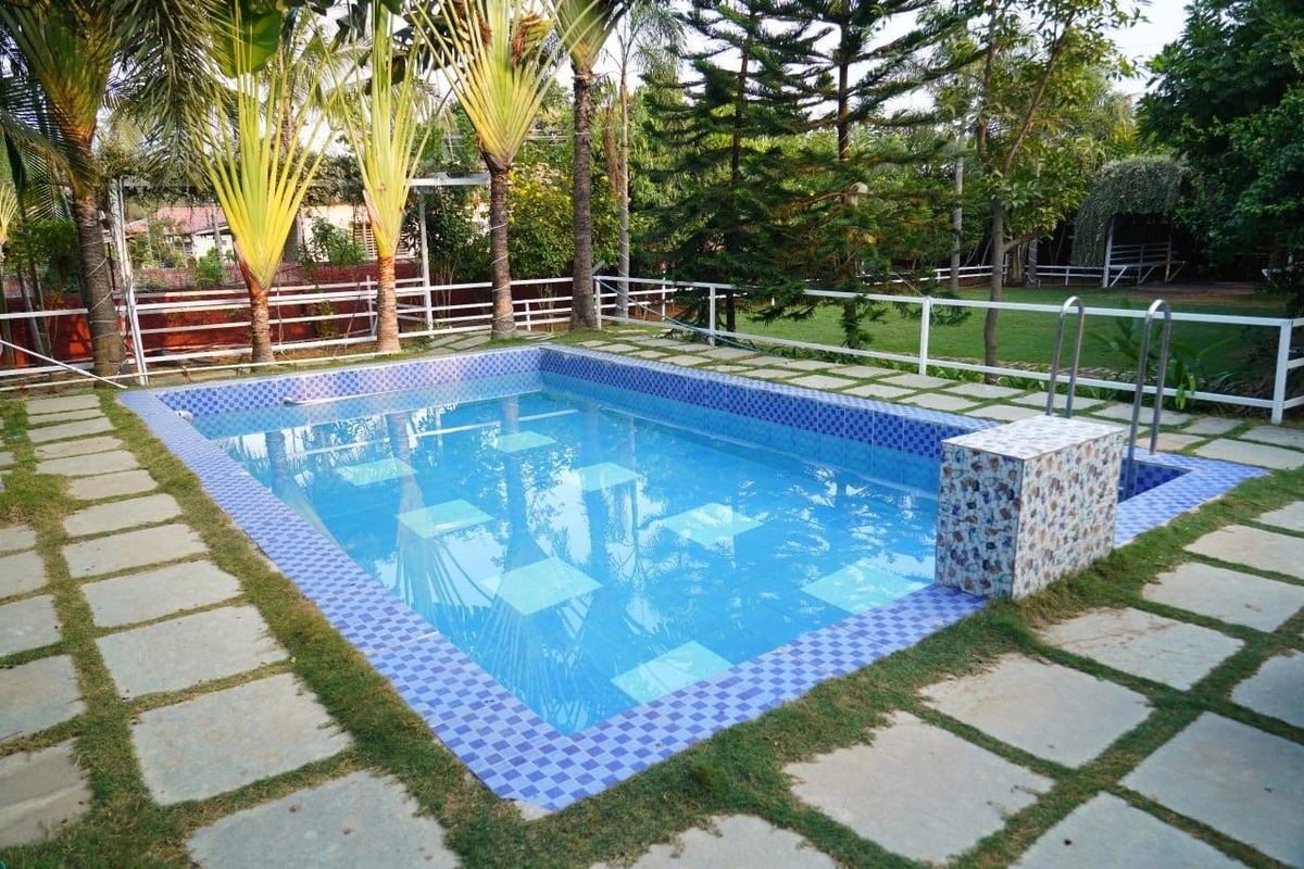Our farm stay is equipped with a range of amenities to ensure a comfortable stay. These include a private swimming pool, a separate BBQ enclosure, an outdoor pantry, and beautifully landscaped lawns. We also have a bar counter, swings, and a disabled-friendly ramp for the convenience of our guests
